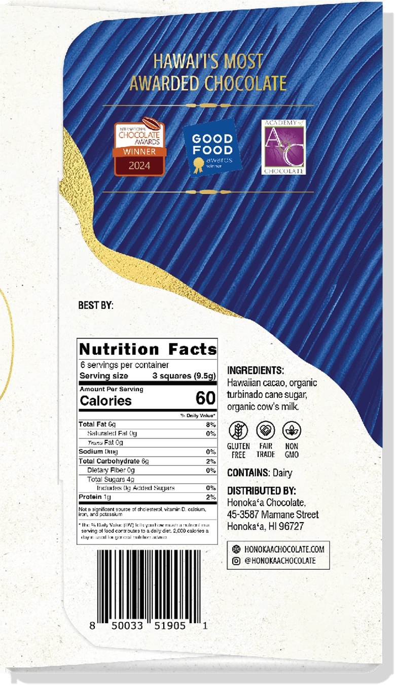 Hawaii island cacao, organic turbinado cane sugar, organic cows milk