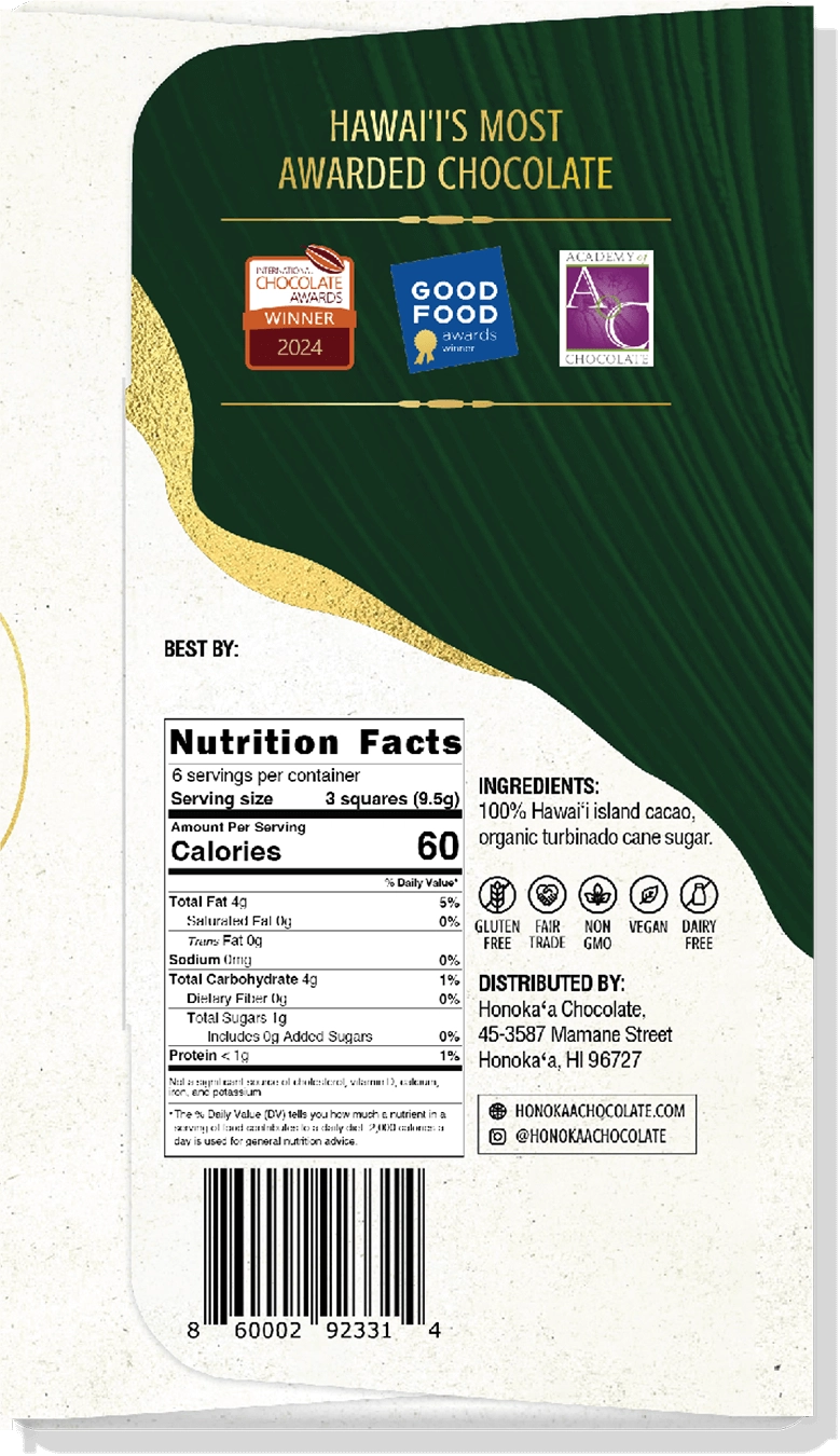 Hawaiʻi grown cacao with a hint of organic cane sugar.