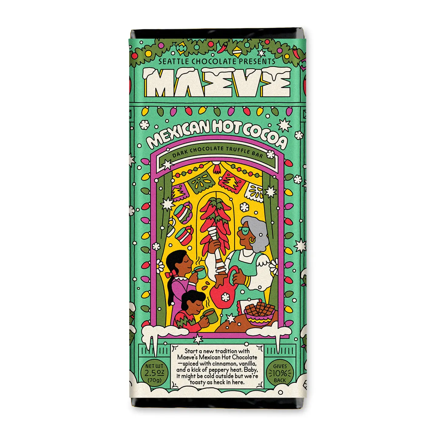 Warm your corazón and wake up the taste buds. Inspired by the classic Mexican drink, velvety dark chocolate swirls with cinnamon, sweet vanilla, and a playful spark of chile heat to create a bar that’s as warm and vibrant as the traditions that inspired it. This bar is made with organic chocolate.