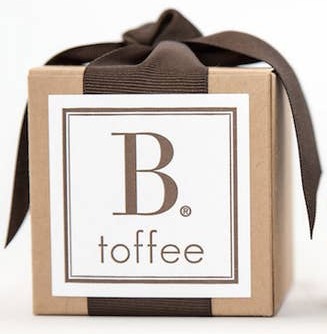 Enjoy our naturally gluten free B. toffee in our custom Kraft Boxes wrapped with chocolate brown ribbons. Each batch is handcrafted to perfection with rich savory butter, sweet domestic sugars, premium Guittard Milk and Callebaut Dark chocolates, topped with superior quality roasted Pecan Nuts.